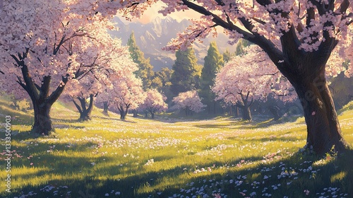 © CLOVER BACKGROUND, Fototapeta premium Breathtaking Springtime Serenity Scene with Cherry Blossom Trees
