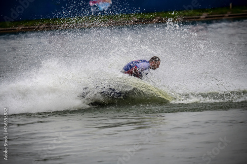 Naklejka premium breathtaking stunts on a water bike in open water in Krylatskoye in Moscow at the international championship