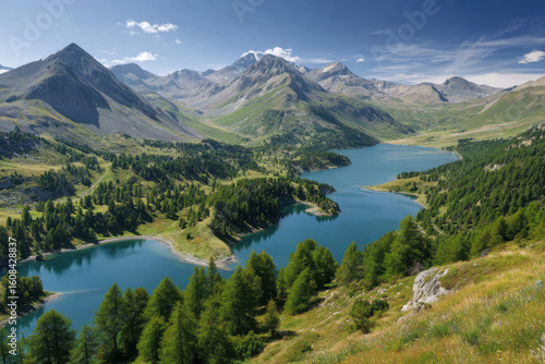 Naklejka premium breathtaking summer landscapes showcasing mountain lakes across different...
