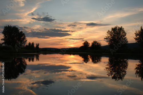 Fototapeta premium breathtaking summer sunset captures essence of warm evening where golden...