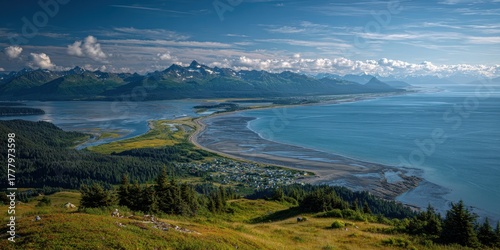 © Ivan, Obraz premium Breathtaking Sunrise Over Homer Spit: A Scenic View of Kachemak Bay and Alpine Shores