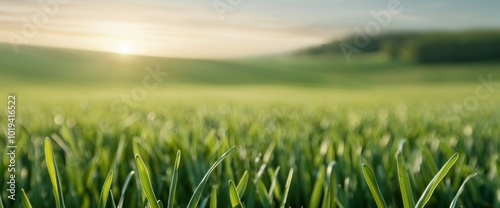 © 2D_Jungle, Fototapeta premium Breathtaking Sunrise Over Lush Green Grasslands A Serene Landscape Experience