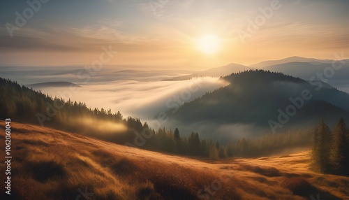 © Pipat, Obraz premium Breathtaking Sunrise Over Misty Mountain Range