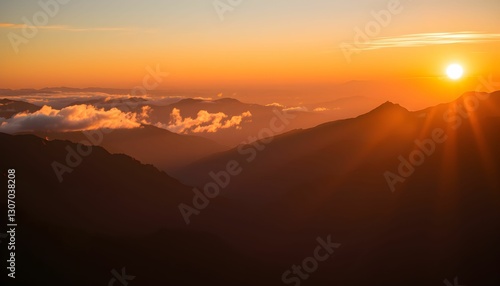 © Andini, Obraz premium Breathtaking Sunrise Views Over Mountain Ranges and Cloud Inversions