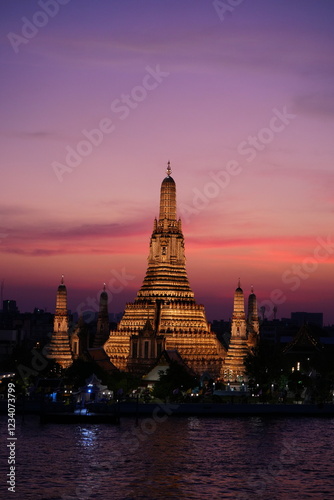 © Eric Akashi, Fototapeta premium Breathtaking Sunset of Wat Arun in Bangkok, Thailand - タイ バンコク ワットアルン 夕日