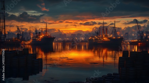 Fototapeta premium Breathtaking sunset over a bustling harbor