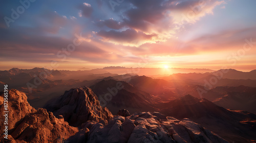 Obraz premium Breathtaking sunset over a rugged mountain range, with the sky ablaze in...