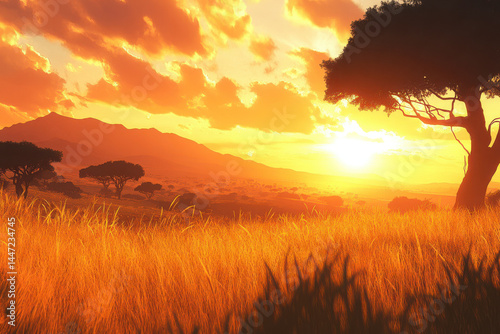 Fototapeta premium breathtaking sunset over african savanna showcasing vibrant colors of sky and...