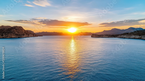 © siraphol, Fototapeta premium Breathtaking sunset over calm waters, illuminating serene landscape