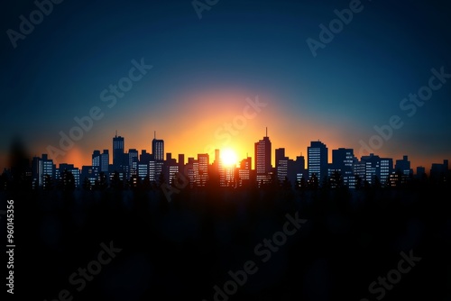 Naklejka premium Breathtaking sunset over city skyline, illuminating buildings with vibrant colors, capturing the essence of urban life and nature's beauty.