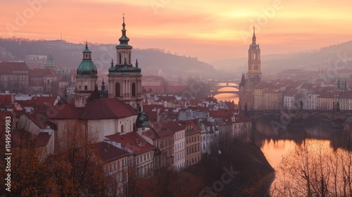 © Joriah, Naklejka premium Breathtaking Sunset Over Historic Cityscape