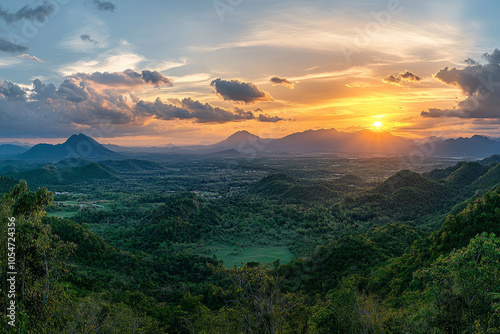 Obraz premium breathtaking sunset over majestic mountains and serene landscapes