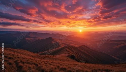© Kitta Studio, Naklejka premium Breathtaking Sunset Over Mountain Landscape with Vibrant Colors