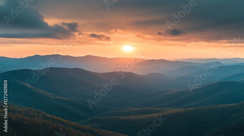 Fototapeta premium Breathtaking Sunset Over Mountain Range Showcases Vibrant Colors and Serene...
