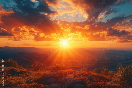 © Bojan, Fototapeta premium Breathtaking sunset over mountains with vibrant clouds illuminating the sky