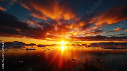 © Sarinrata, Obraz premium Breathtaking Sunset Over Tranquil Arctic Ocean with Dramatic Clouds
