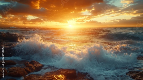 © Ampere, Fototapeta premium Breathtaking Sunset Over Tranquil Ocean Waves with Vibrant Colors Creating a Peaceful Atmosphere