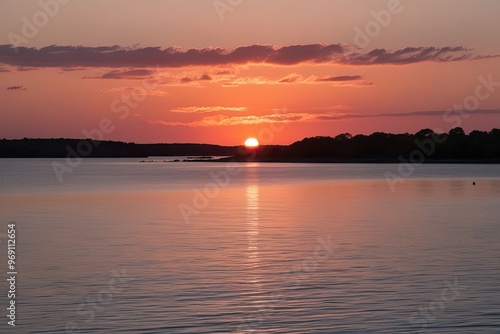 Obraz premium Breathtaking Sunset Over Tranquil Waters with Serene Light and Stunning...