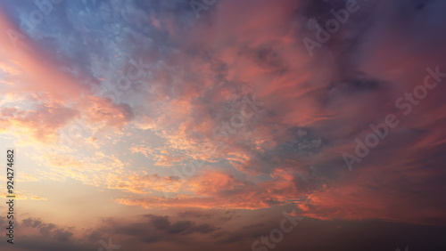Naklejka premium Breathtaking Sunset Sky with Vivid Colors and Dynamic Clouds