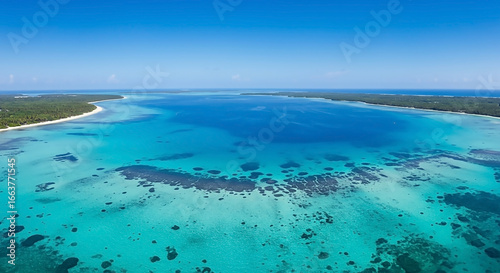 © Saiful Islam Wasif, Obraz premium Breathtaking Tropical Lagoon Turquoise Waters, Palm Trees, and Pristine Beauty Under a Bright Blue Sky