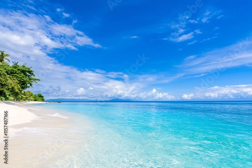 Fototapeta premium Breathtaking Tropical Paradise Beach with Turquoise Ocean and Clear Blue Sky