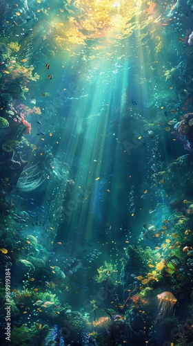 Fototapeta premium Breathtaking underwater scene with vibrant coral, gentle light rays, and...