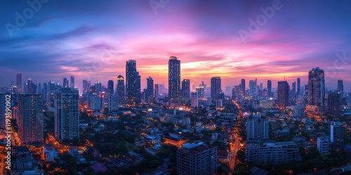 Fototapeta premium Breathtaking Urban Skyline at Dusk with Vibrant Colors and Majestic City...