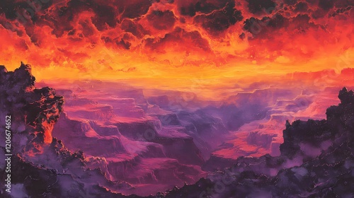Fototapeta premium Breathtaking View of a Colorful Canyon at Sunset with Dramatic Clouds and...