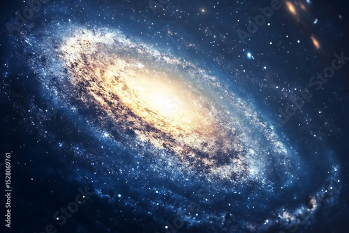 © Magwin, Fototapeta premium Breathtaking view of a glowing spiral galaxy surrounded by stars in deep space. A vivid and detailed cosmic scene ideal for astronomy, science fiction, education, or inspirational space-themed content