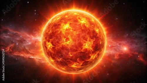 © yuwaree, Obraz premium Breathtaking view of a red giant burning sun in outer space galaxy