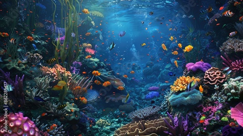 Fototapeta premium Breathtaking view of a vibrant coral reef ecosystem, alive with fish and...