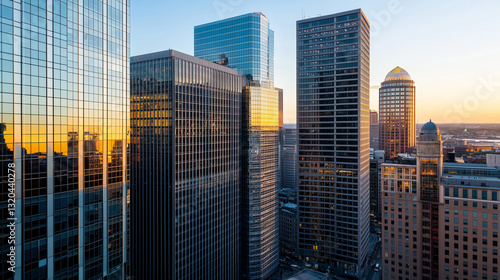 Obraz premium Breathtaking View of Boston's Downtown Financial District Skyline with Modern Skyscrapers at Sunset
