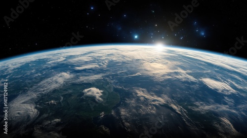 Fototapeta premium Breathtaking View of Earth from Space Showcasing Vibrant Blue Oceans Green...