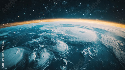 Fototapeta premium breathtaking view of swirling hurricanes over Earths surface, showcasing...