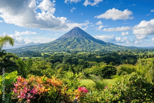 © Nakorn, Obraz premium Breathtaking view of volcanic mountains overlooking lush tropical valleys filled with colorful exotic flora nature photography panoramic landscape scenic beauty
