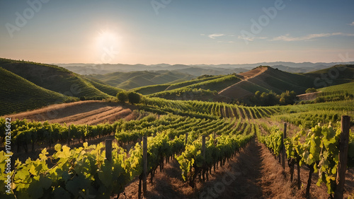 Fototapeta premium Breathtaking vineyard sunset tuscany landscape photography lush background...