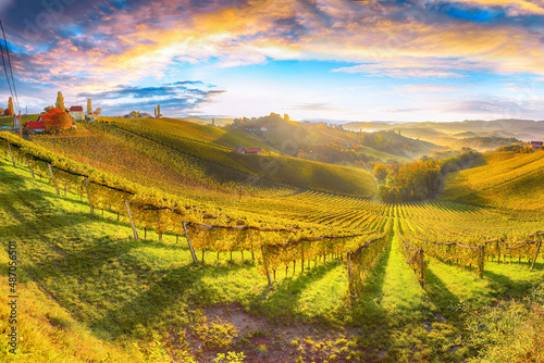 © pilat666, Naklejka premium Breathtaking vineyards landscape in South Styria near Gamlitz.