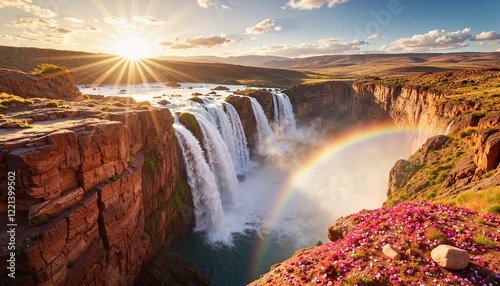 © Vasilina FC, Fototapeta premium Breathtaking waterfall cascading petals in hidden canyon, spring beauty
