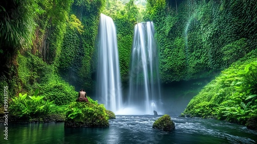 © Mitchell, Obraz premium Breathtaking waterfall exploration tropical rainforest nature photography lush environment serene viewpoint