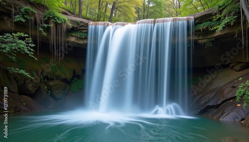 © Mr.Pancho Store, Obraz premium Breathtaking Waterfall on World Cancer Day: Nature's Serenity amidst Lush Forest