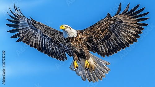 Fototapeta premium Breathtakingly hdr image of a bald eagle soaring in the sky with wings...