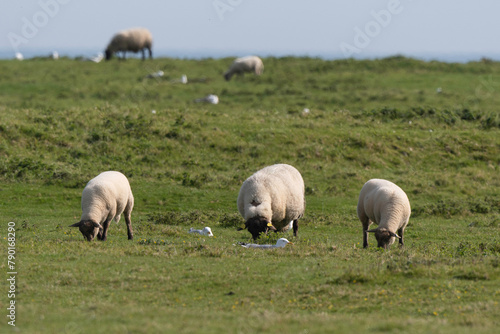 Fototapeta premium brebis, race Roussine de la Hague,, Ile de Tatihou, Saint Vaast la Hougue, Site naturel protégé, Manche, 50, France