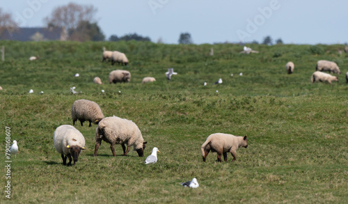 Fototapeta premium brebis, race Roussine de la Hague,, Ile de Tatihou, Saint Vaast la Hougue, Site naturel protégé, Manche, 50, France