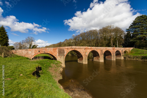 © Andy Chisholm, Fototapeta premium Bredwardine Bridge, red brick crossing river Wye