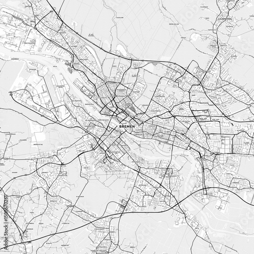 © Knut Hebstreit, Naklejka premium Bremen Area Map with Labels and Neighborhoods - One color, minimalistic design