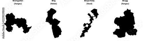 Naklejka premium Bremgarten, Brig, Broye-Vully, Brugg outline maps