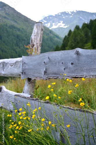 Fototapeta premium Bretterzaun in den Südtiroler Bergen - altes Handwerk - Bergbauern und ihr Lebensraum