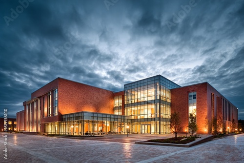 Fototapeta premium Brick and Glass Building at Dusk