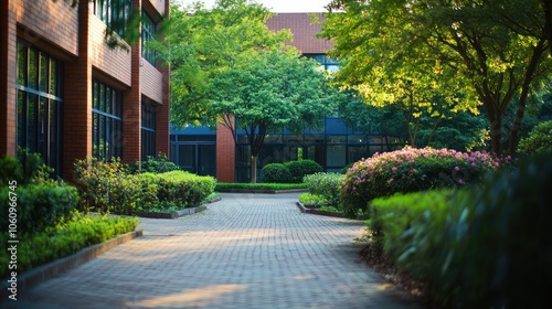 Obraz premium Brick Building Courtyard Pathway