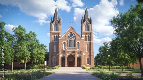 Fototapeta premium Brick church on a sunny day